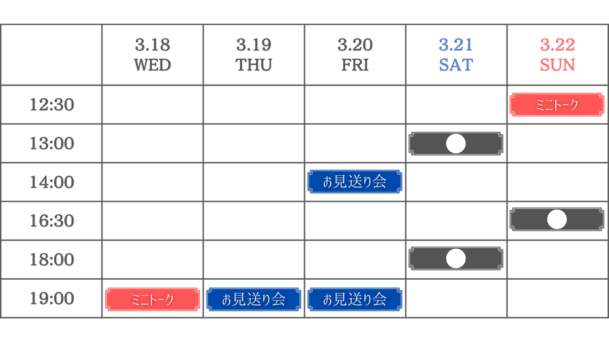 2026年3月18日(水)〜3月22日(日)
